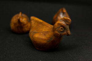 série de poules en bois vernis